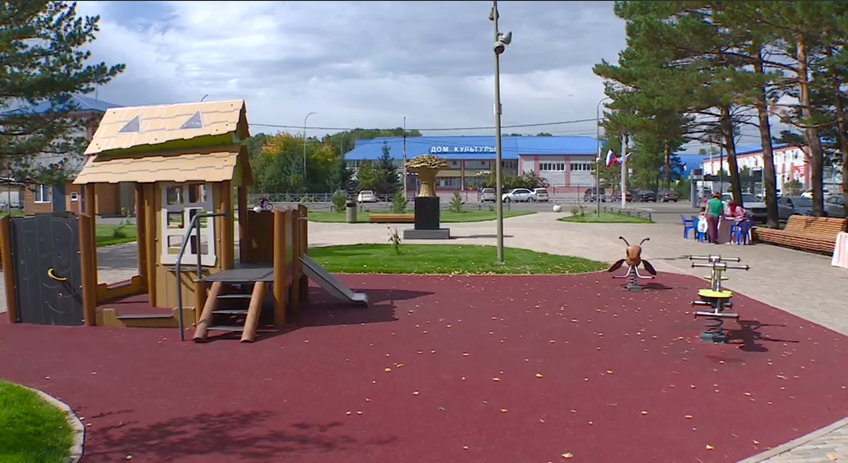 Площадь преобразилась. Взамен старого асфальтового покрытия по всей территории уложена брусчатка. Здесь появились игровые комплексы для детей, встроенные батуты, памп-трек и скейт парк, площадка с тренажерами, теннисные столы, канатные комплексы и зоны «тихого» отдыха с амфитеатром, беседками и светящимися кольцевыми качелями. На территории парка работает кафе, а также модуль с постом охраны и комнатой матери и ребенка. Благодаря этому, центральный парк стал удобным, красивым и безопасным для жителей.