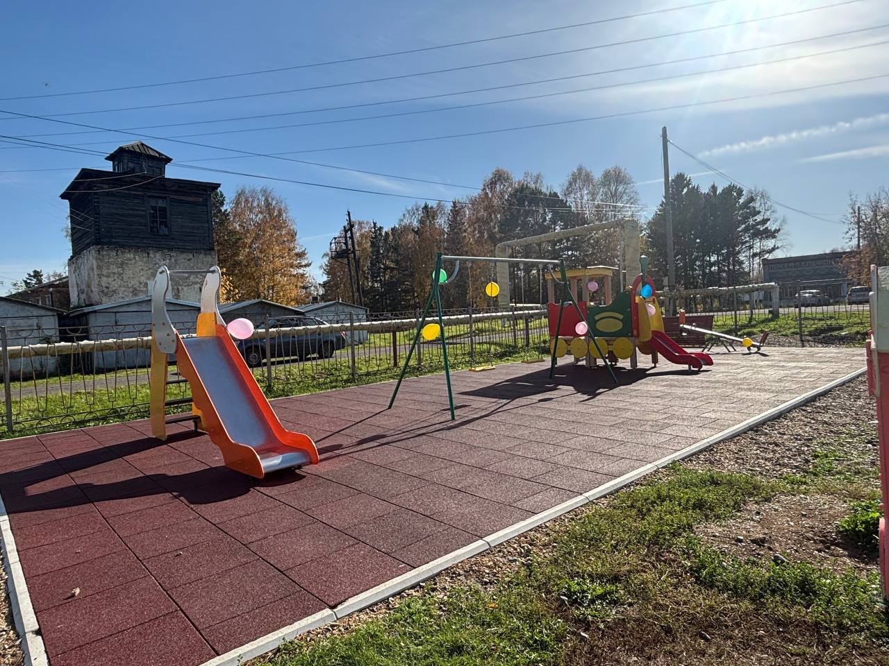 Новая площадка создана с учётом всех требований безопасности. Она надежно огорожена, а под игровыми элементами уложено специальное покрытие, которое смягчит любое падение. Малышей ждут веселые горки, захватывающие качели и задорная карусель. А для родителей предусмотрены удобные парковые диваны, где можно отдохнуть, наблюдая за своими чадами.