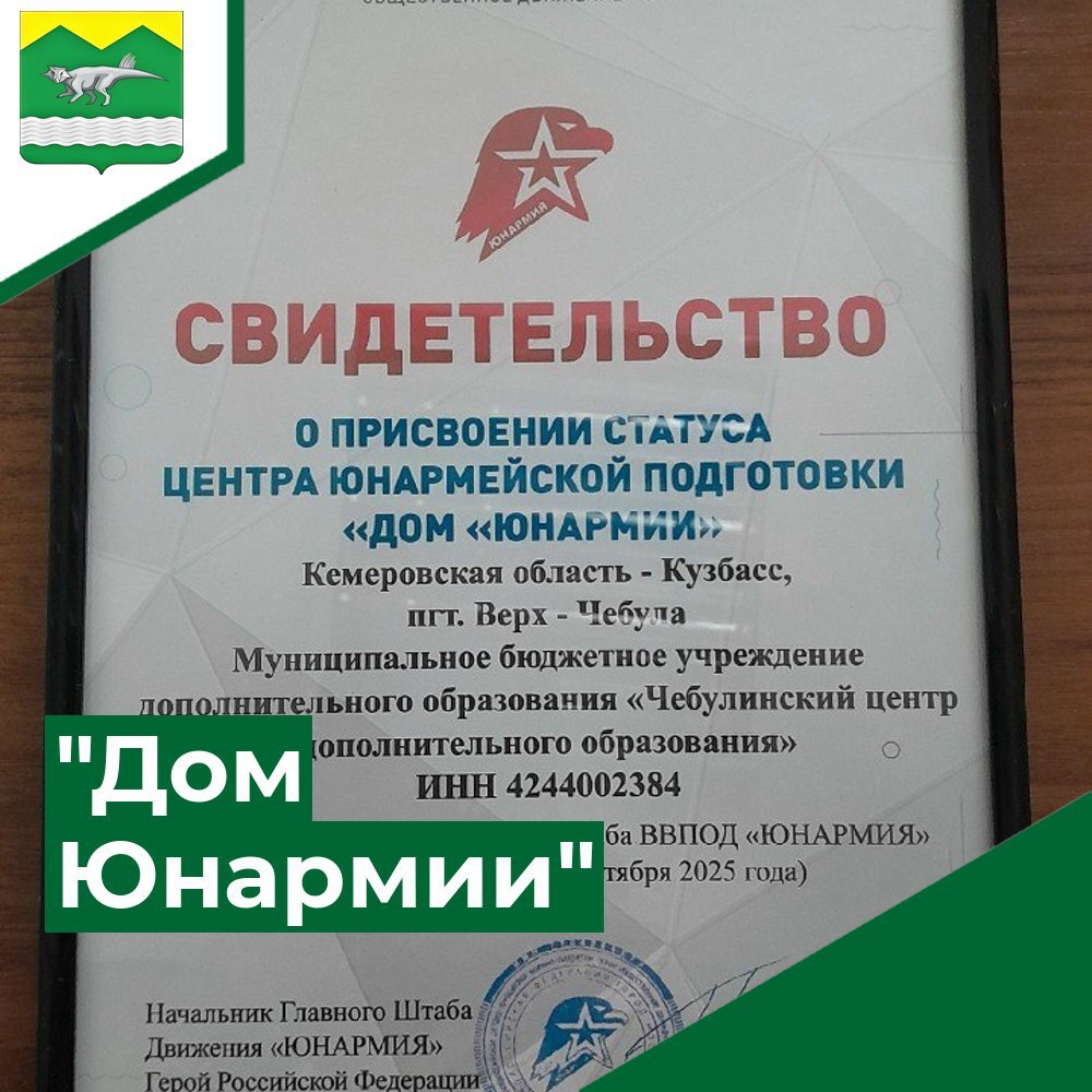 Местное отделение Всероссийского детско-юношеского военно-патриотического общественного движения "Юнармия" и коллектив Чебулинского центра дополнительного образования получили заслуженное признание – им присвоен новый статус «Дом Юнармии».